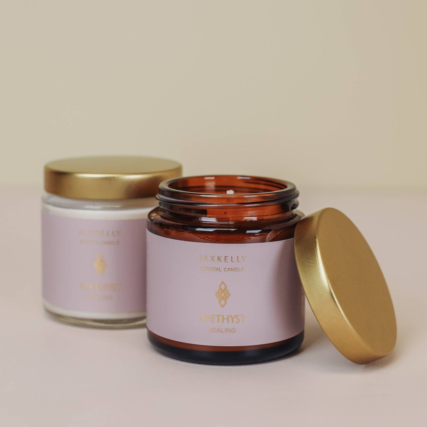 Immerse yourself in the soothing blend of amber and sandalwood, creating a calming and serene ambiance. Nestled inside each candle is a genuine Amethyst crystal, adding a touch of significance and intention to your candle experience.