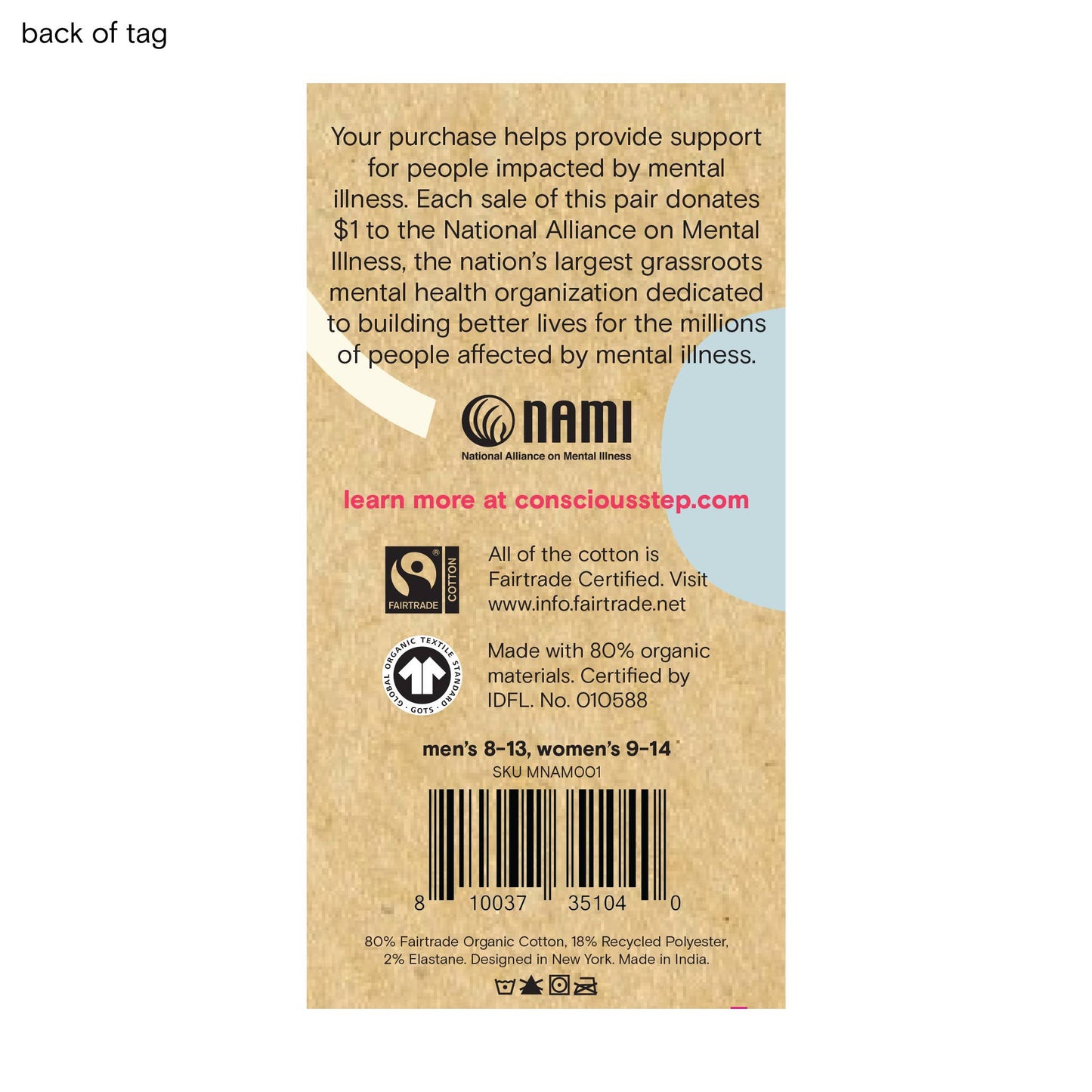 Each pair of Socks that Support Mental Health donates $1 to the National Alliance on Mental Illness (NAMI) – helping to break the stigma and ensure no one struggles alone.