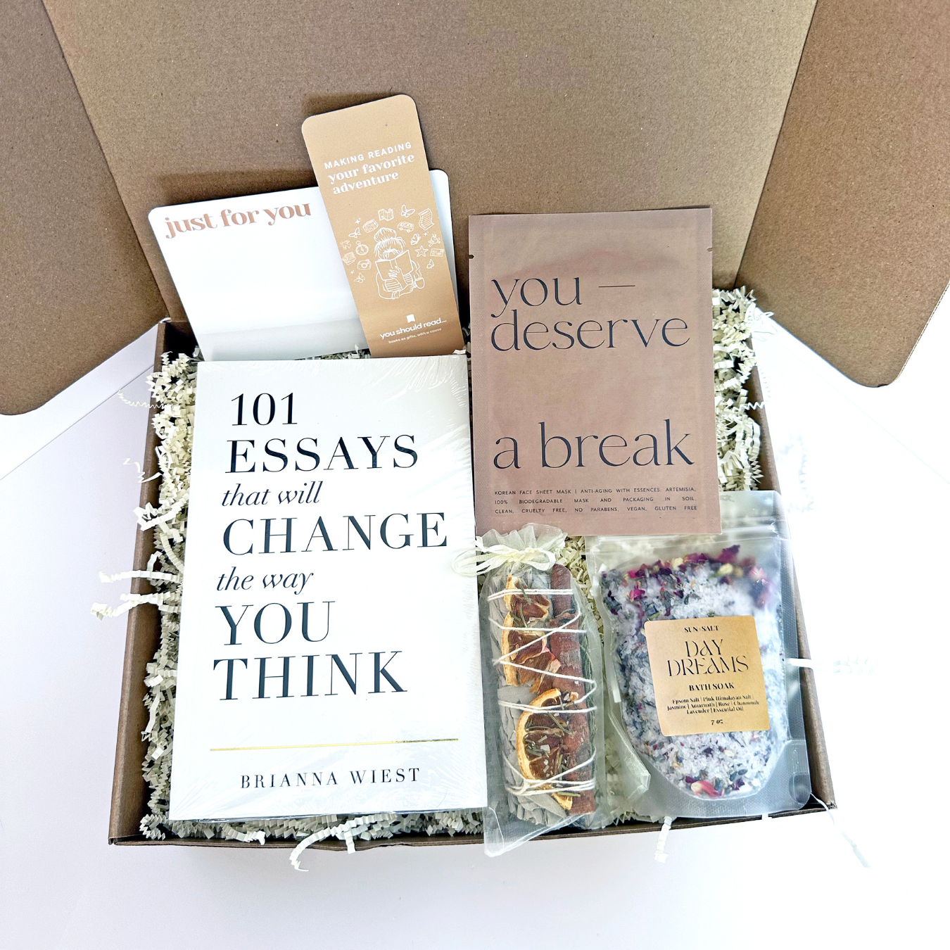Whether you are gifting a moment of calm to a busy mom, a thoughtful teacher, a caring nurse, or treating yourself to a pause, The Recharge Kit is a curated invitation to slow down, reflect, and renew. Featuring the bestselling book 101 Essays That Will Change the Way You Think by Brianna Wiest, this self-care box blends mental clarity with physical relaxation.