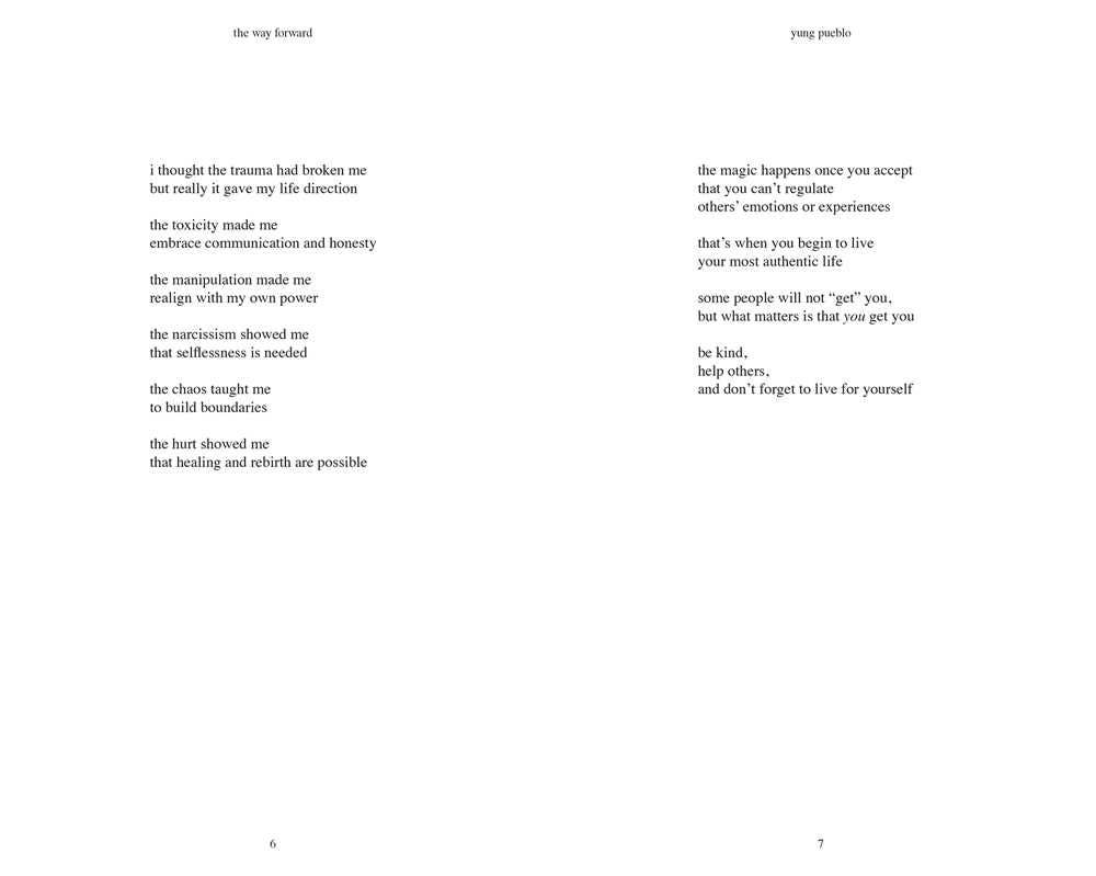 The penname yung pueblo means “young people” and is meant to convey that humanity is entering an era of remarkable growth and healing, when many will expand their self-awareness and release old
